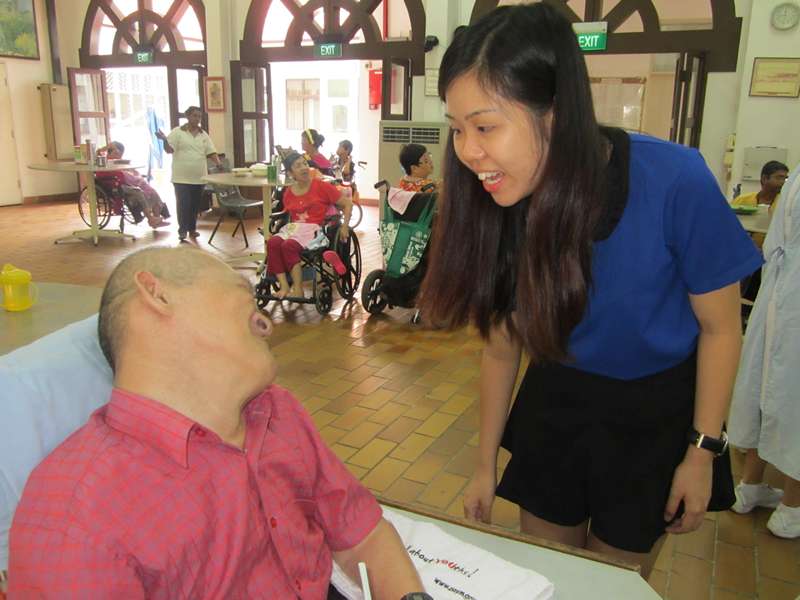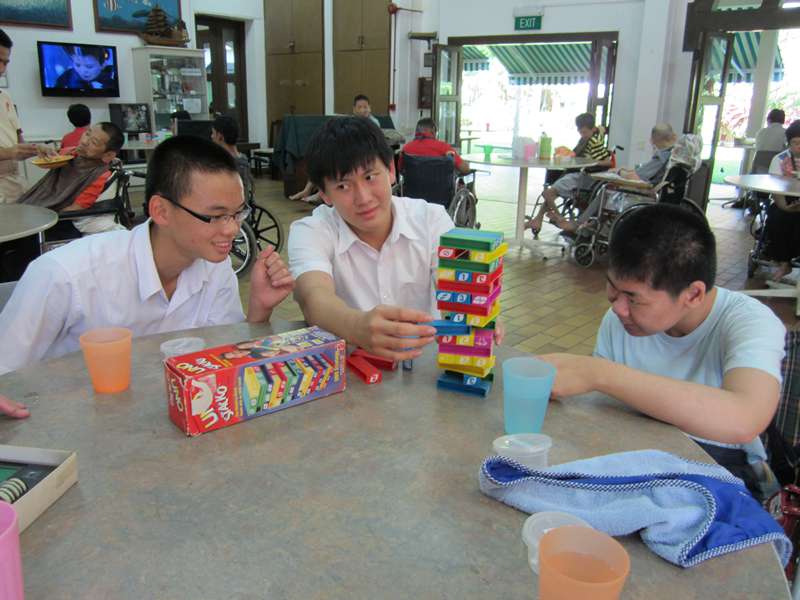 Volunteers 2013Photos of our volunteers and their contributions in 2013 A game of UNO game Stacker Air Force Training Command performance Art & Crafts with volunteers ASG Acquisition Pte Ltd giving away bingo prizes Bingo game with MHA volunteers Carnation Group outing to NTUC Fairprice Carnival games by YouthsCARE Celebrating Mooncake Festival Hon Secretary Ms Sheila Lim at the Home Ice-breaker game by NTU volunteers Lion Dance Performance by The Emerald Hill Group Music and Movement by volunteers Performance during Chinese New Year Performance from Talented People Company Piecing a jig-saw puzzle Shamizen Performance by Mr Baisho Matsumoto Student from Anderson Junior College Student from CHIJ-Our Lady of Good Counsel Students from Hougang Sec School Ukulele Performance by RSVP Singapore Visit from USS George Washington Travelers Volunteer from Chinmaya Volunteer sharing a light moment SONY DSC Volunteers from Singapore Realtors Inc 5000LLP Volunteers from Temasek International Pte Ltd Volunteers from The Carollers Volunteers teaching basic English Vounteer chatting with a resident Vounteer giving a haircut